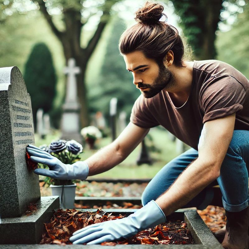 - ● Ometení náhrobku, odstranění napadaných nečistot a listí